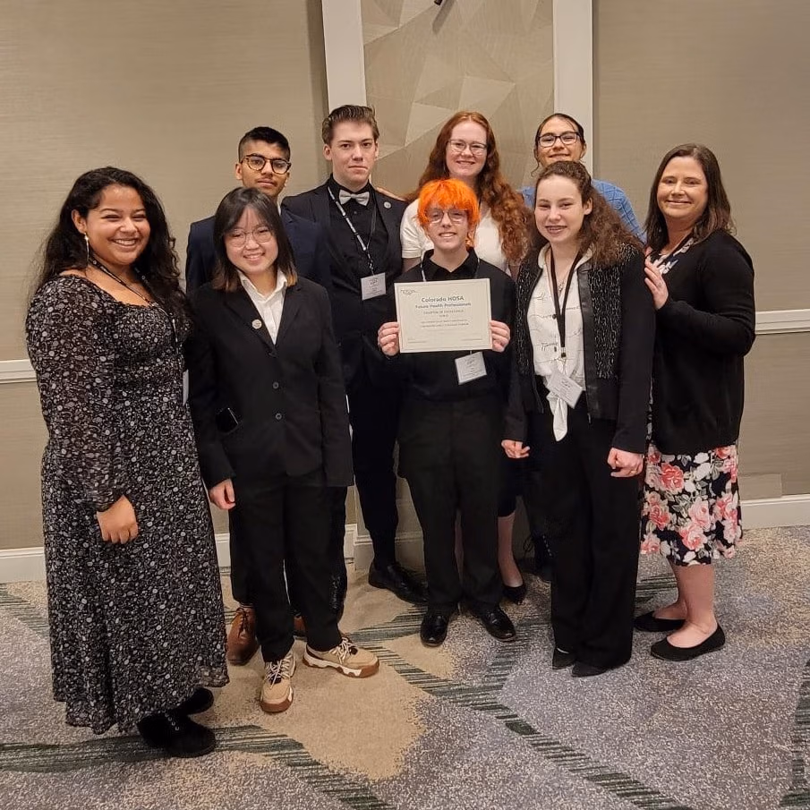 Congratulations to the CEC Parker HOSA team for their big wins at the state conference last month! The competing team consisted of Connor W, Samantha T, Taylor C, Neviyah M, Tiffany H, Dhwanit S, Kai P, and Nicole B. The whole HOSA team took 1st place in the HOSA service project and was awarded the Chapter of Excellence Award Gold level. Our CERT Team placed in the top 10. Our HOSA Bowl Team placed in the top 8. Kai competed in Clinical Laboratory Science and placed in the top 10. Samantha T was awarded the Babara James Service Award Bronze level. So many memories were made and students were exposed to scholarship opportunities, networking with colleges and vendors, and informative symposiums. Way to go, HOSA!